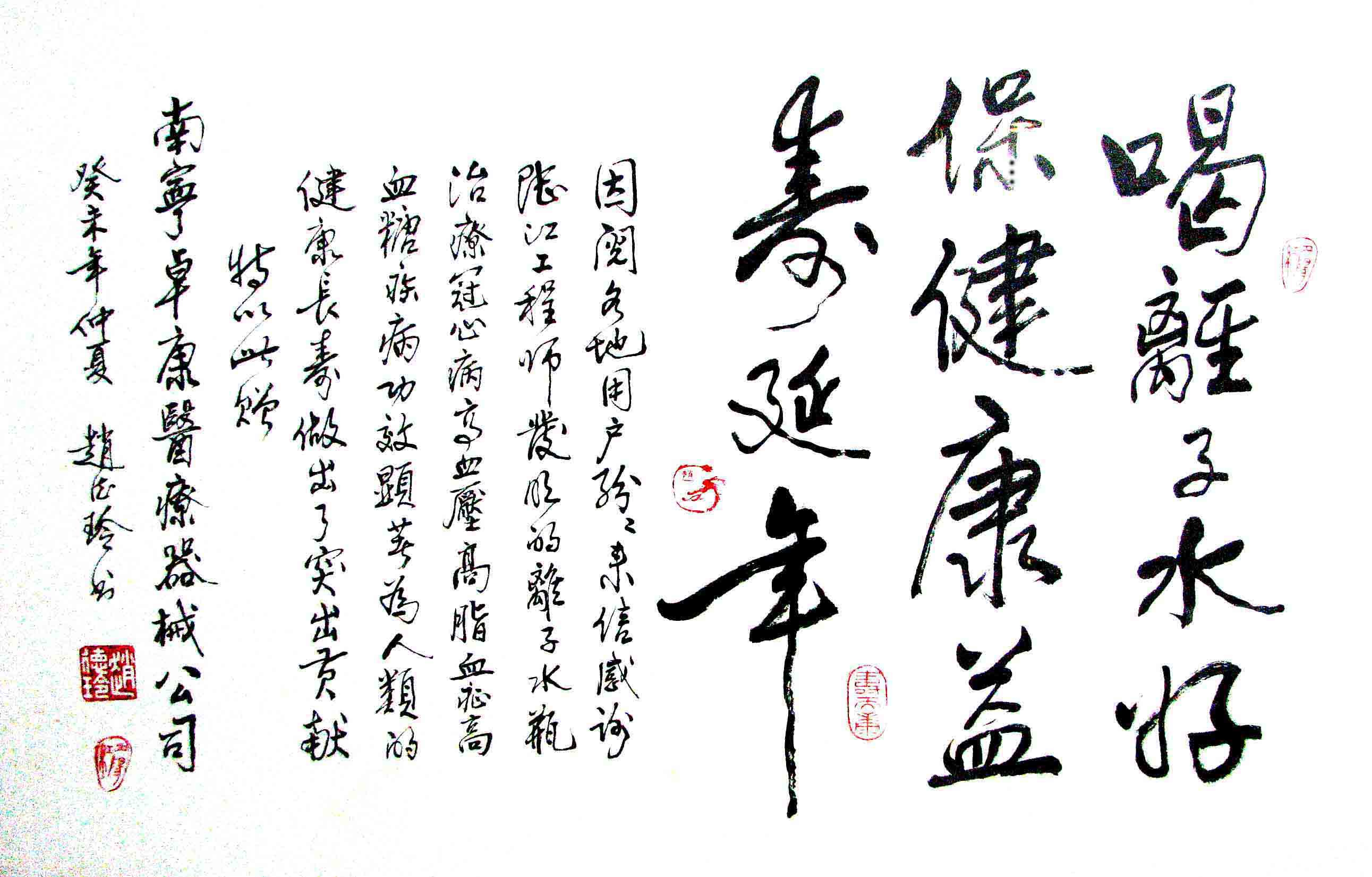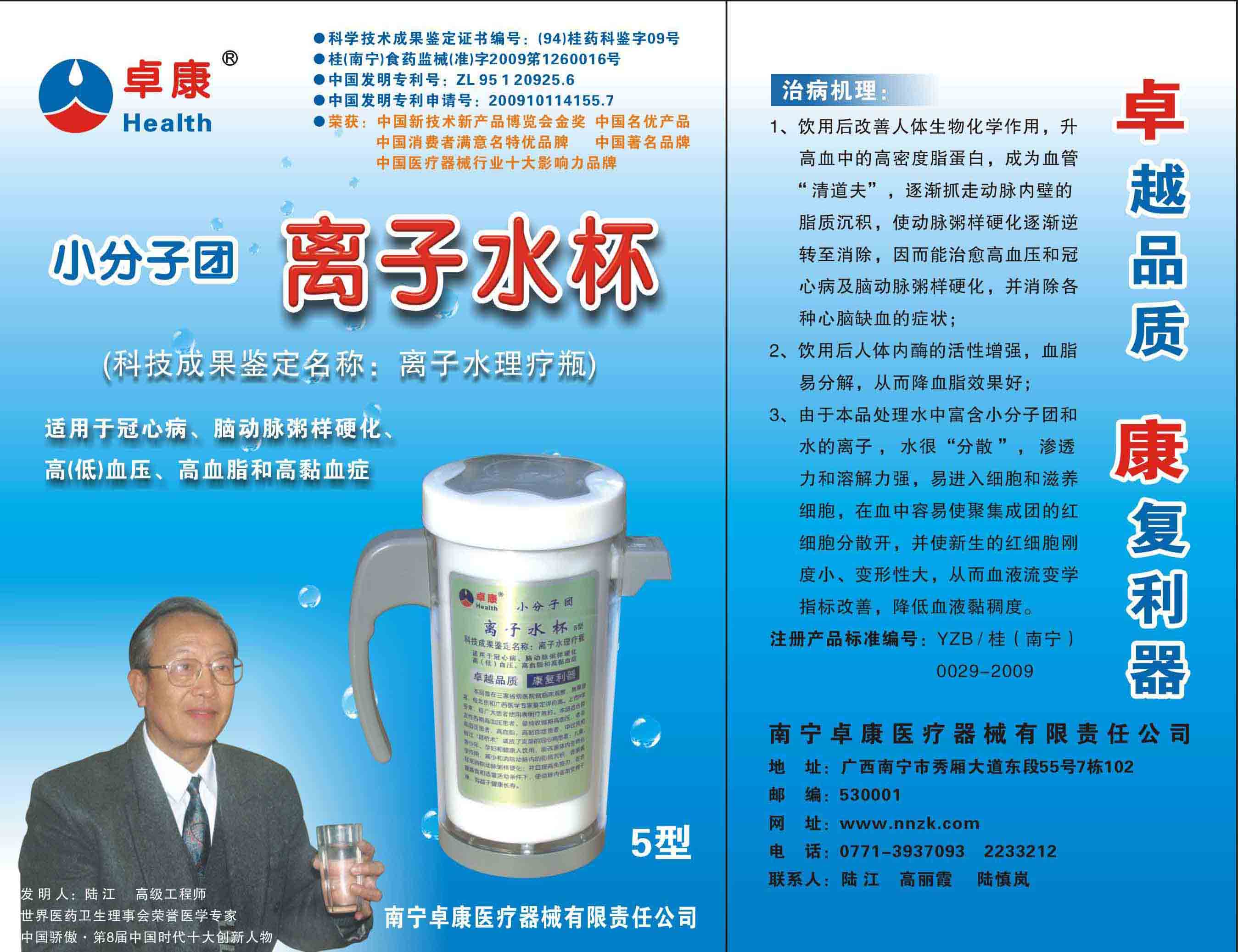 -----我是從事建筑的高工,本來(lái)沒有資格去攻克醫(yī)學(xué)難題,卻為了自身健康才扣響醫(yī)學(xué)的大門。由于我1990年患高血壓,因怕中風(fēng)才研究發(fā)明了離子水瓶,我把水處理成微小分子團(tuán)水,飲用后治愈了高血壓。便于1993年底送到三家省級(jí)醫(yī)院做臨床試用4個(gè)月。經(jīng)北京和廣西醫(yī)學(xué)專家鑒定:"降脂降壓效果好"," 能擴(kuò)大心腦動(dòng)脈流量,改善心腦電圖以及微循環(huán)","對(duì)治療心腦動(dòng)脈粥樣硬化、高血壓、高血脂有良好的醫(yī)療保健作用。""產(chǎn)品的技術(shù)性能和療效達(dá)到了同類產(chǎn)品的國(guó)內(nèi)領(lǐng)先水平,經(jīng)廣西醫(yī)學(xué)科學(xué)情報(bào)研究所檢索,未見國(guó)外有類似報(bào)道。"中國(guó)醫(yī)學(xué)科學(xué)院張正國(guó)教授從美國(guó)國(guó)立醫(yī)學(xué)圖書館數(shù)據(jù)庫(kù)存Medline檢索英俄文資料,均未見類似報(bào)告。2000年上市后,我為了對(duì)消費(fèi)者負(fù)責(zé)而繼續(xù)觀察研究,一直通過《信譽(yù)卡》和《質(zhì)量跟蹤調(diào)查書》向患者承諾療效,請(qǐng)用戶使用6個(gè)月后反饋效果。和脂壓患者飲用2至5個(gè)月內(nèi),消除癥狀,停服藥物,血壓正常;冠心病患者飲用3~5個(gè)月逐漸減輕至消除心絞痛、房顫等癥狀,不再服藥,飲用1年左右心電圖正常,經(jīng)冠脈造影掃描無(wú)明顯狹窄,表明冠心病痊愈。大量患者還反映許多衰弱器官被修復(fù),讓前列腺增生、慢性咽喉炎、慢性氣管炎、支氣管炎、慢性胃炎、腸炎和膽囊炎等不藥而愈;2型糖尿病患者是因?yàn)橐葝u衰弱致病,飲用該水半年至一年,逐漸減藥至停藥,血糖尿糖正常,真正治愈2型糖尿病。中風(fēng)后遺癥患者飲用六七個(gè)月,可逐漸減輕至消除肢體和語(yǔ)言障礙,表明飲用該水能讓壽命很長(zhǎng)的神經(jīng)元細(xì)胞逐漸修復(fù),奇跡般地恢復(fù)肢體和語(yǔ)言功能。飲用后還使胸腺和脾臟兩個(gè)重要的免疫器官被修復(fù)和增強(qiáng),產(chǎn)生免疫細(xì)胞多,提高了免疫力,使人不生病或少生病。自此, 飲用微小分子團(tuán)水創(chuàng)造了攻克冠心病、高(低)血壓和糖尿病三大醫(yī)學(xué)難題的奇跡。人們對(duì)此感到不可思議,但實(shí)踐是檢驗(yàn)真理的唯一標(biāo)準(zhǔn)。